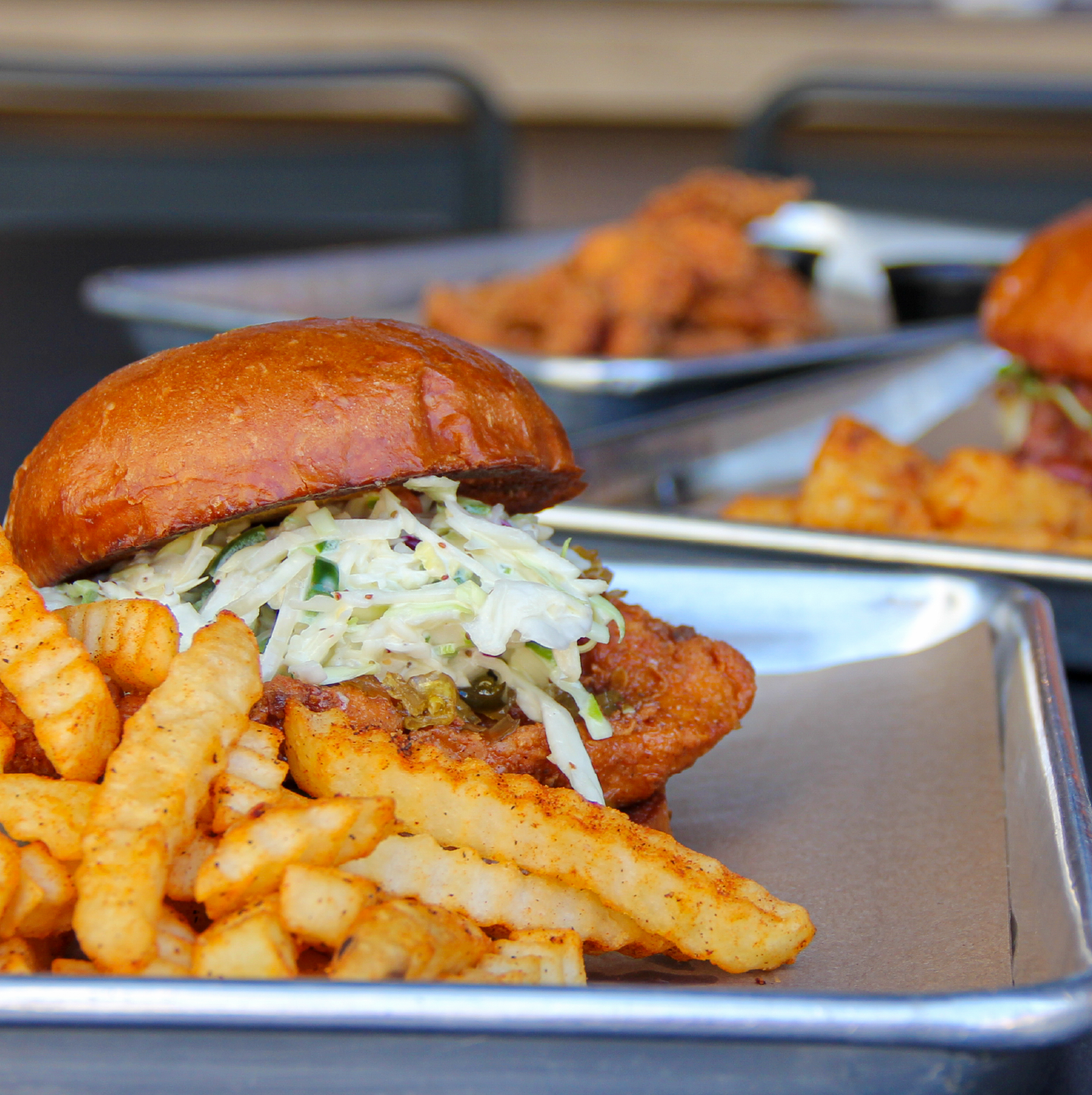 From signature builds like the Super Smash (pickled jalapeños, American cheese, pickles, fried onions + RIOT sauce) to crowd favorites like Hot Honey Chicken and Buffalo Chicken, every item is made to bring the flavor and the fun.